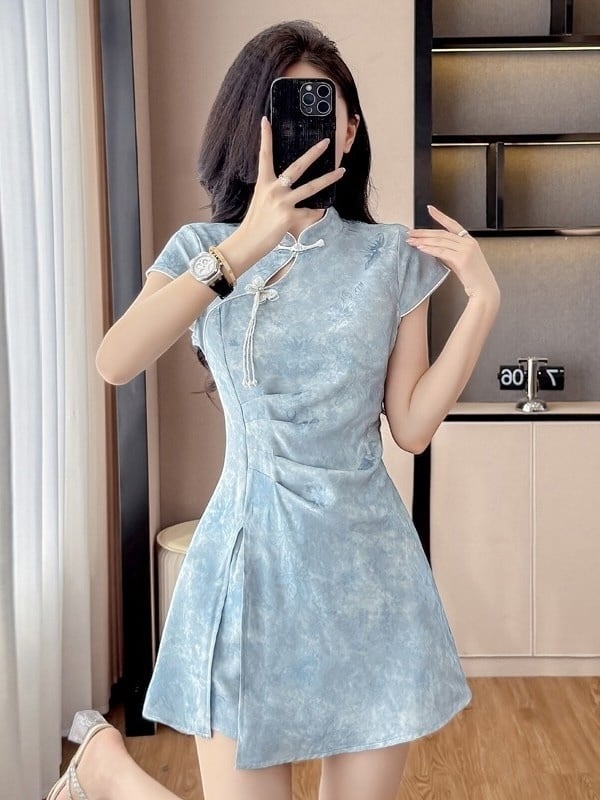 ウエストサイドには優雅なギャザー・ドレープを施し、女性らしい曲線美を強調。ミニ丈と相まってスタイルアップ効果が期待できます。
