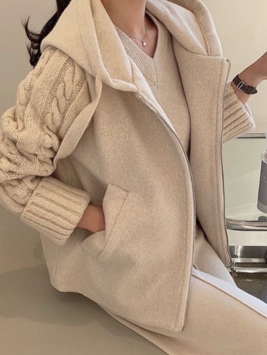 ニットの袖とウール風素材の組み合わせが新鮮なアウターです✨