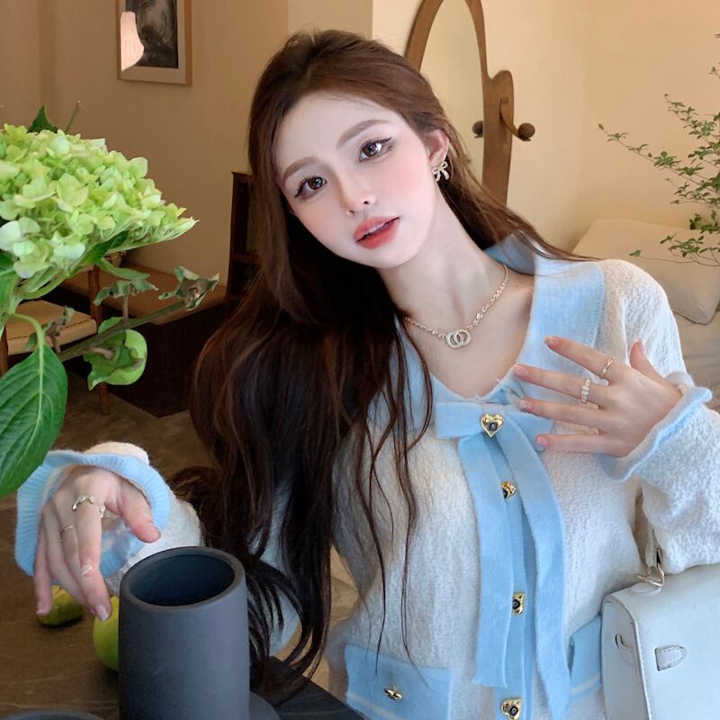 リボンニットトップスV01902